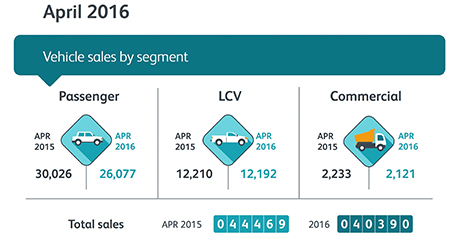 The South African new vehicle sales market continued its 2016 decline, this April. According to the latest aggregated figures from the National Association of Automobile Manufacturers of South Africa (Naamsa) total industry new vehicle sales declined 9.2%, year-on-year, with only 40 390 new vehicles sold across all segments.